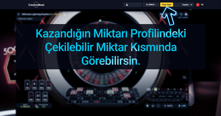 Kazandığın nakiti hesabından çekebilir veya CasinoMaxi'nin diğer canlı casino masalarında kullanarak kazancın doruklarına erişme fırsatını değerlendirebilirsin.